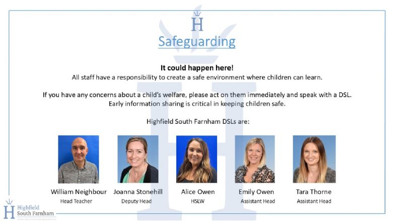 Please refer to the policy section of this website for a full list of Highfield South Farnham School policies.