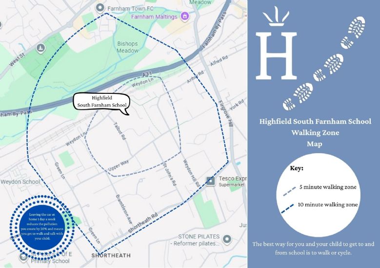 Our school plan is designed to support all members of Highfield South Farnham School and residents. This plan is primarily directed at reducing unnecessary or unsustainable car travel made by staff, pupils and their parents made to and from the school.